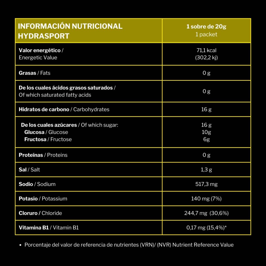 Hydrasport by Recuperation is a food supplement in the form of an instant powdered hypotonic drink formulated to provide optimal hydration before, during and after sports activity. This product stands out for its optimal concentration of mineral salts and balanced sugar content, offering an enhanced experience for athletes. Flavour: Lemon, Orange and Strawberry.