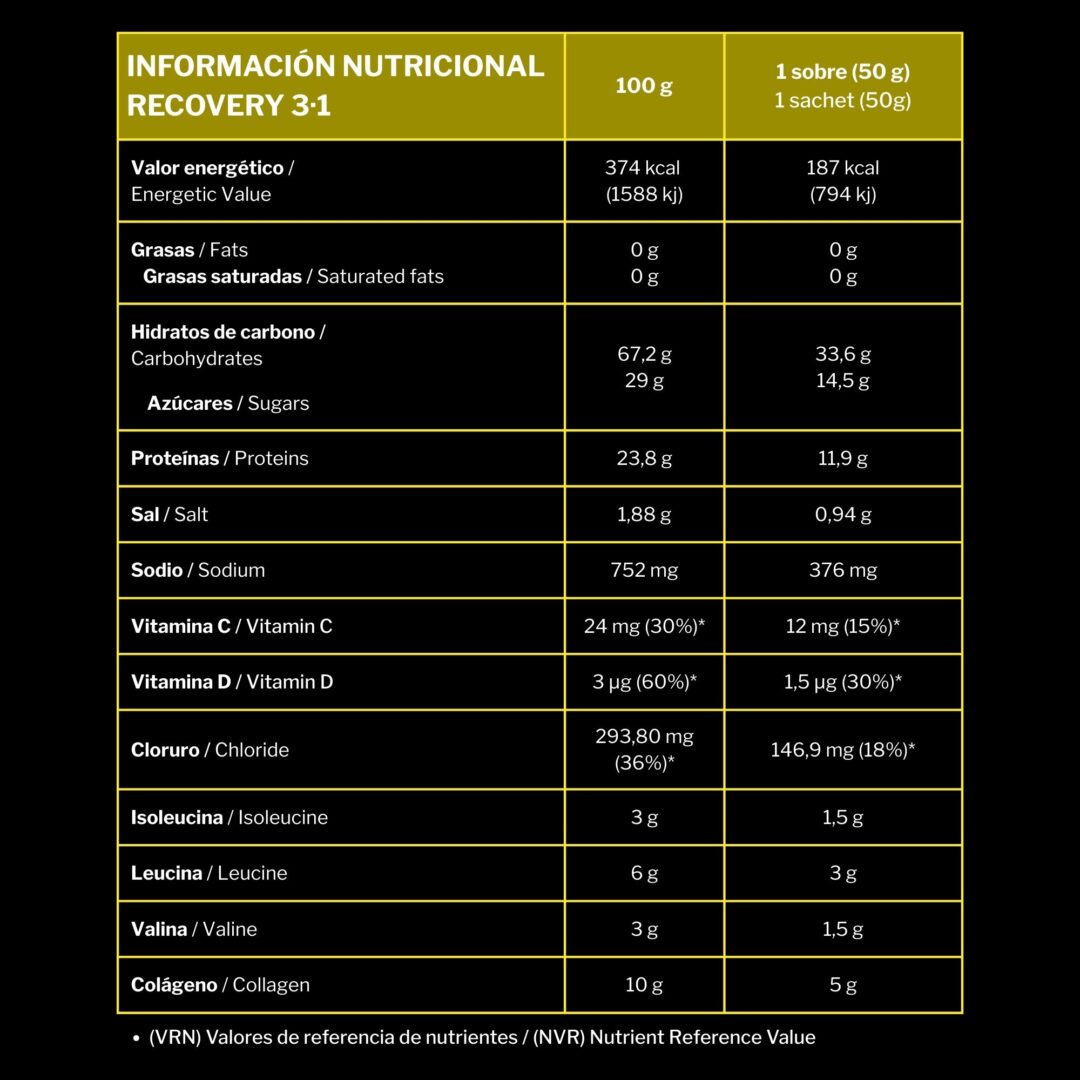 It is a food supplement in the form of an instant powdered drink that provides carbohydrates, pea protein and hydrolysed collagen. It is also enriched with BCAAs (Isoleucine, Leucine and Valine) and vitamins D and C. Contains sugars and a sweetener.