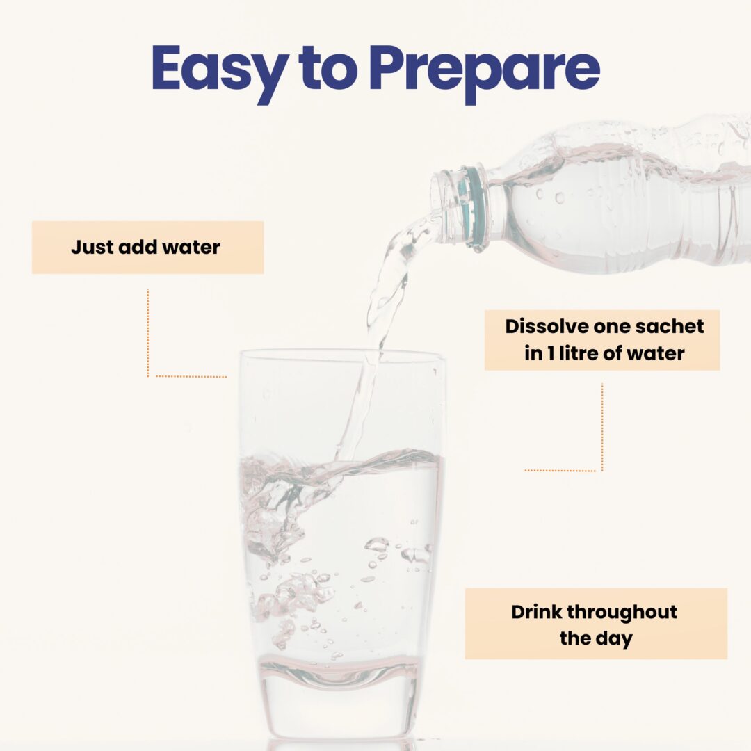 - Versatile and easy to use: Each sachet can be dissolved in 1 to 1.5 litres of water, adapting to individual hydration needs.